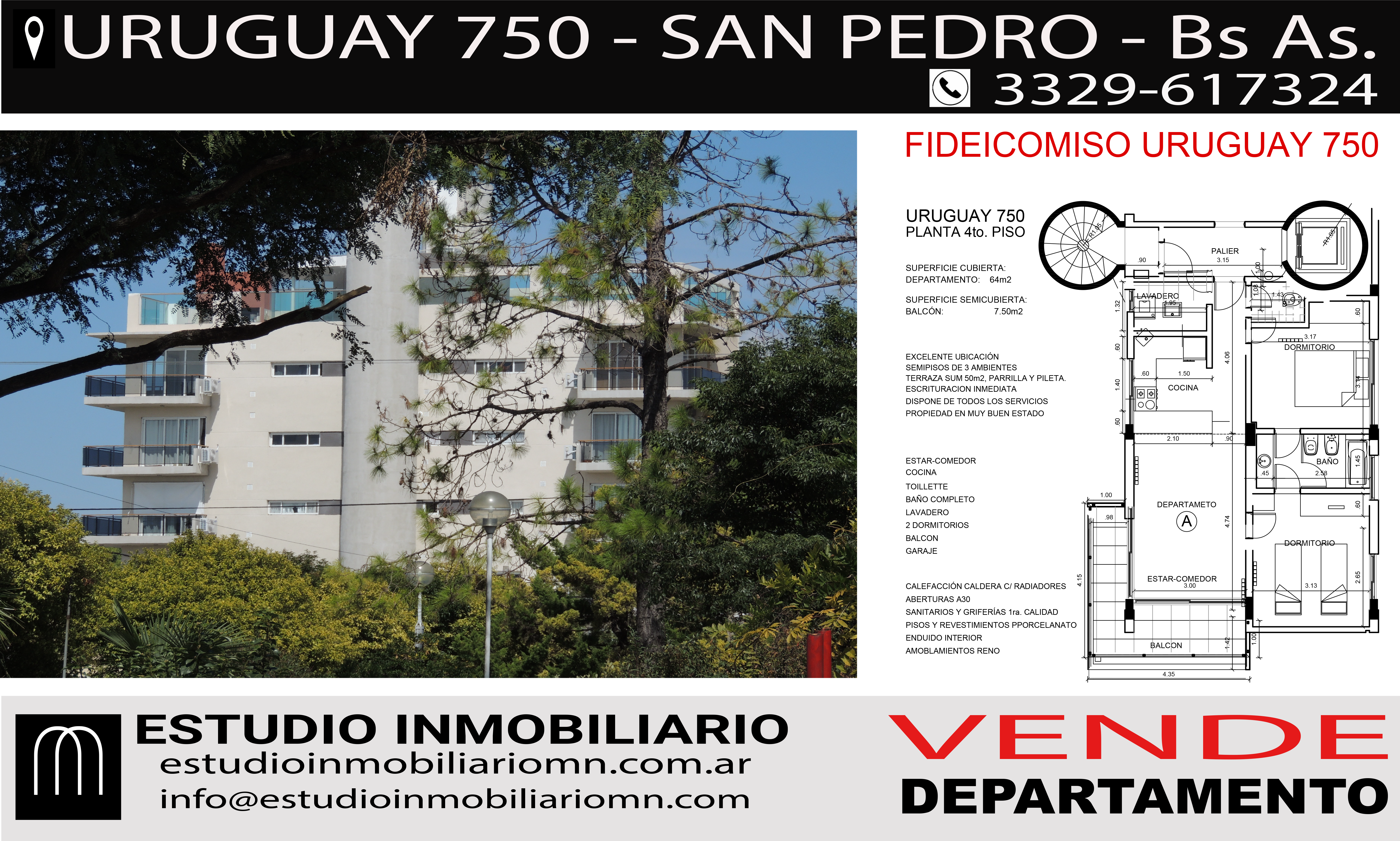 - Superficie cubierta: 64 m²